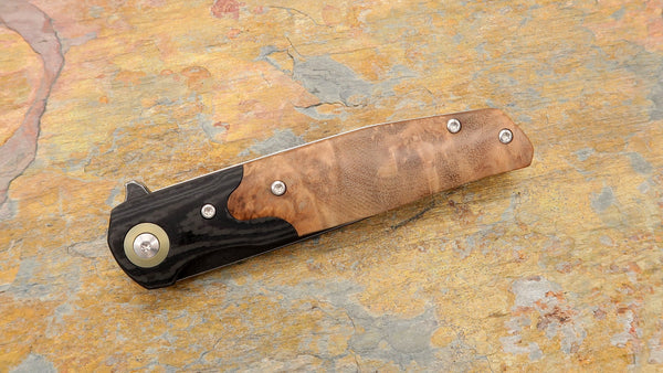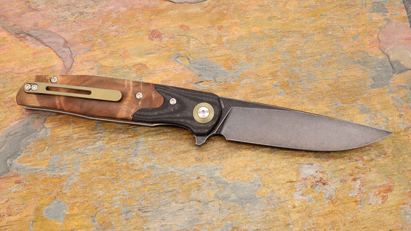 Bestech Ascot Flipper, Black G-10 and Burl Wood Handle with Black Stonewash Blade BG19E