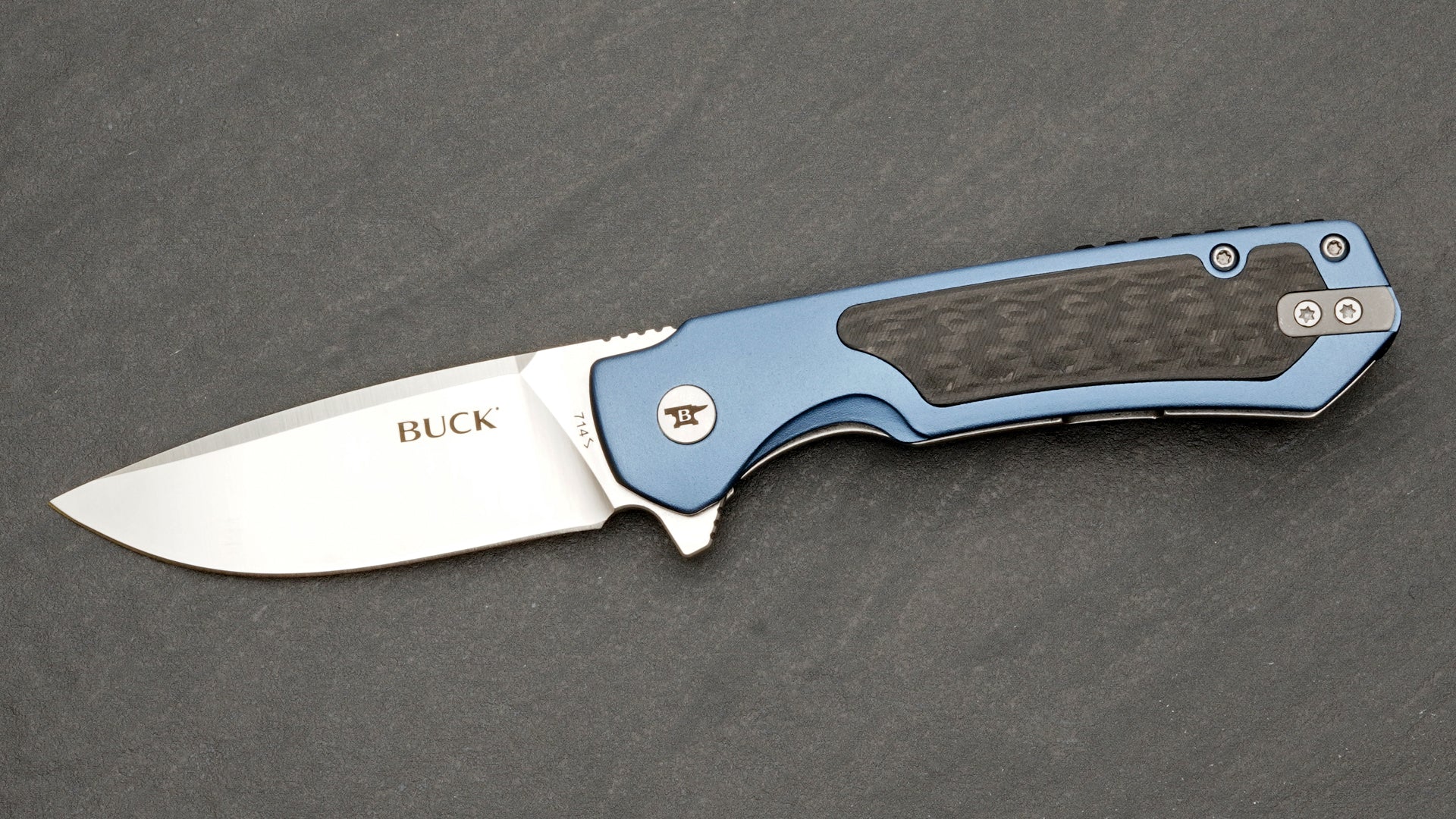 Stinger Flipper, Blue Aluminum Handle with Carbon Fiber 0714BLS