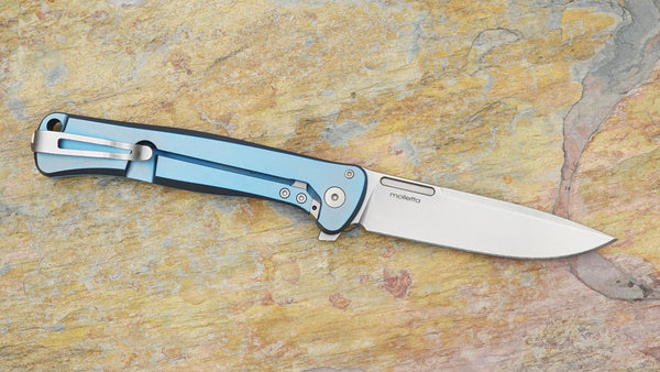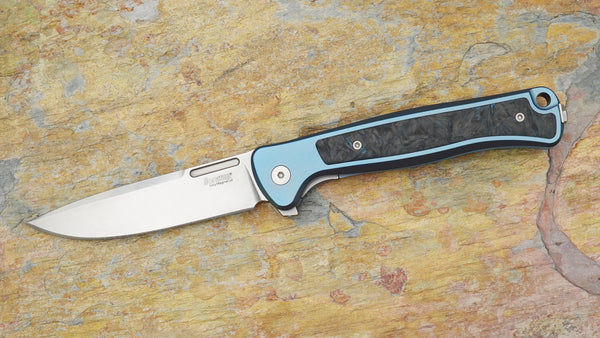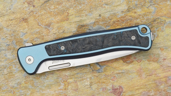 Lionsteel Skinny Flipper, Inegral Blue Titanium and Blue Dark Matter FatCarbon Handle SK01-BL