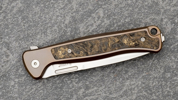 Lionsteel Skinny Flipper, Inegral Bronze Titanium and Gold Dark Matter FatCarbon Handle SK01-BR