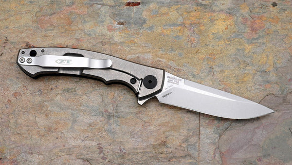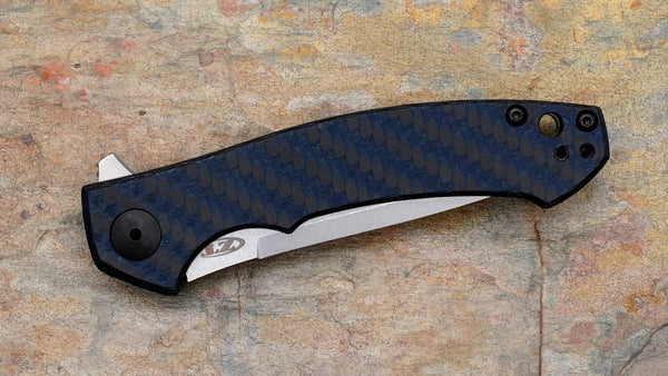 ZT Dmitry Sinkevich Titanium Flipper, MagnaCut Blade and Blue Carbon Fiber Handel 0450BLUCF