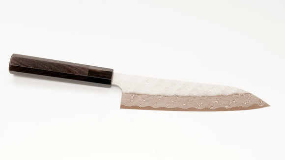 Nickel Warikomi Damascus 7" Bunka, Rosewood and Ebony Handle NWD180K