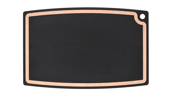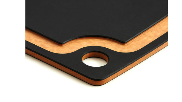 Epicurean Cutting Boards are a perfect companion in the kitchen. Made in the U.S.A. of eco-conscious wood-fiber composite, they are not only knife-friendly but dishwasher safe and heat resistant up to 350 degrees. The Gourmet Series provides a juice groove on one side to keep things neat, and a flat surface on the other for easy food prep. With a thicker profile and heavier weight, the Gourmet Series will stand up to a lifetime of hard use.