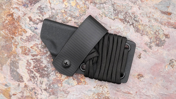 These can all be set up for drop (vertical) or scout (horizontal) carry. The GMF1 Kydex sheaths come with a length of paracord, converting it to a handy neck knife.
