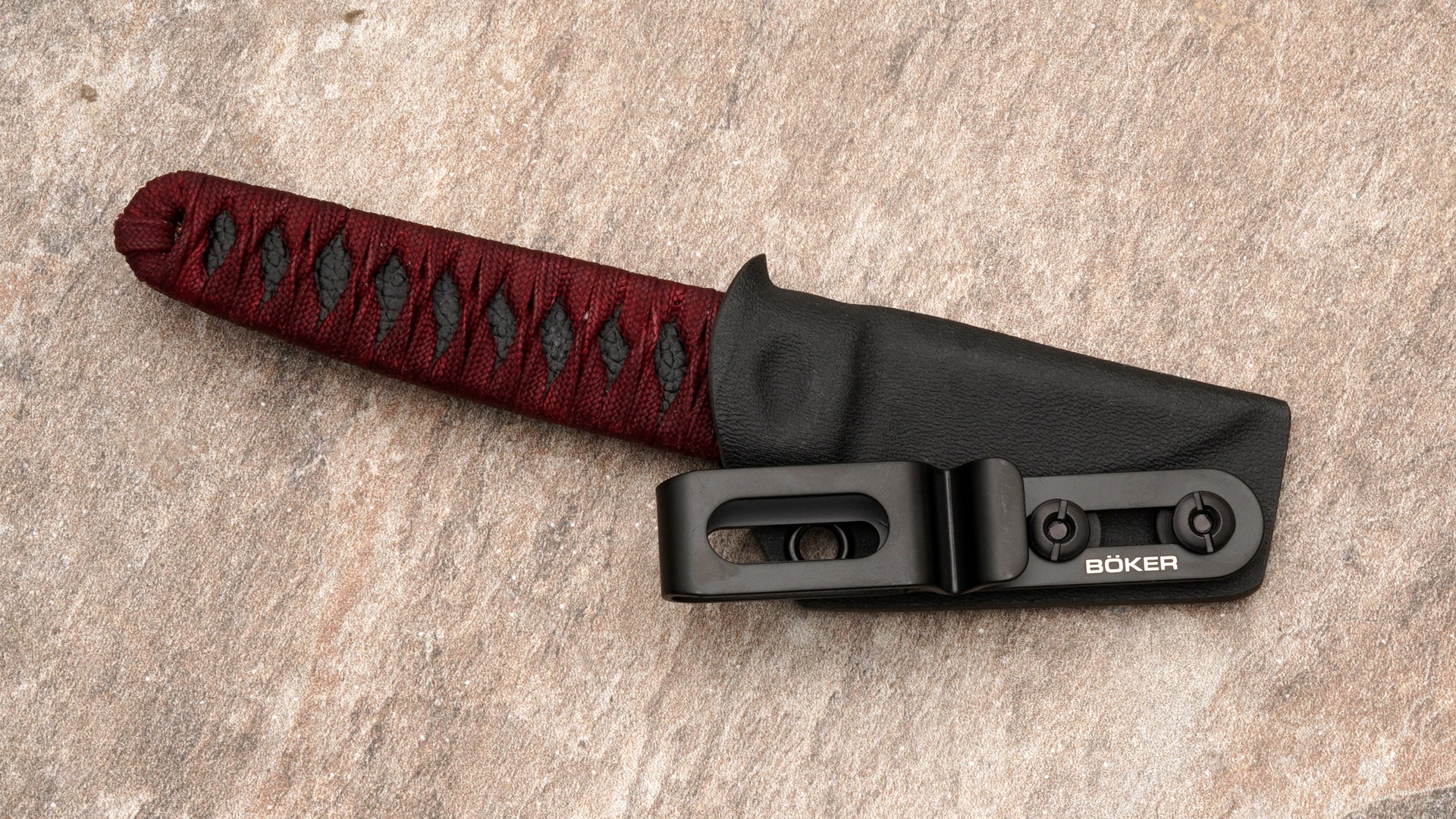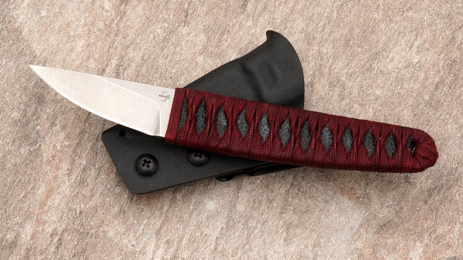 Boker Plus Kissaki Fixed Blade, Red Cord Wrap Over Black Faux Ray Skin Handle 02BP0026