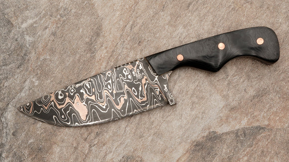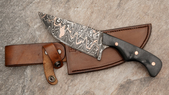 Pablo Guerra Hunter, Bronze/1084 Damascus Blade and Black Micarta Handle