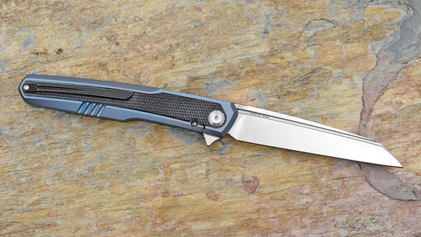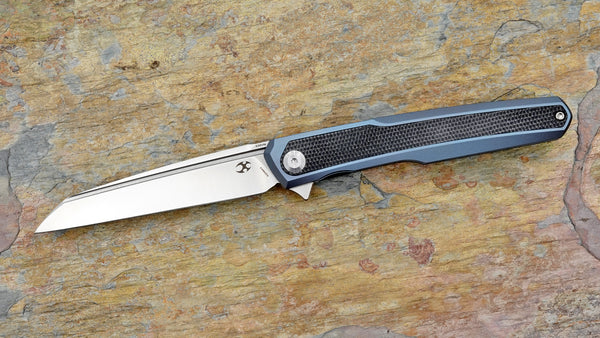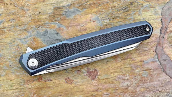 Kansept Arcus Flipper, Blue Titanium and Black Micarta Handle K1046A3