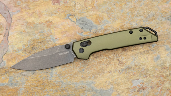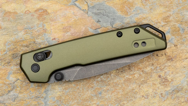 Mini Iridium DuraLock Folder, Blackwash Blade and Olive Aluminum Handle 2051OLBW