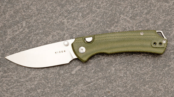 Kizer Bulldog Clutch Lock Folder, Black Blade and Green Micarta Handle V3672A3