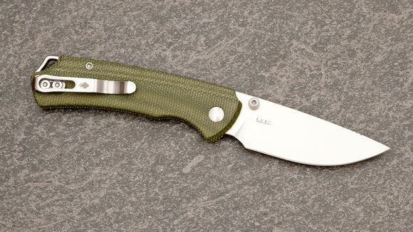 Kizer T1 BD Button Lock Folding Knife, Green Micarta Handle V3490.2BA1