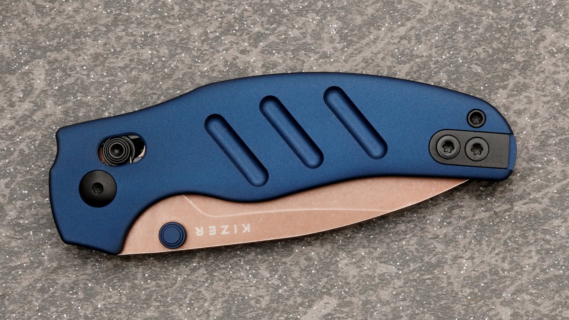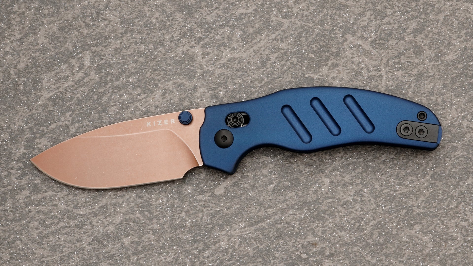 Kizer C01C 2.9 Clutch Lock, Tan Drop Point Blade and Blue Aluminum Handle KI3488.29CDA1
