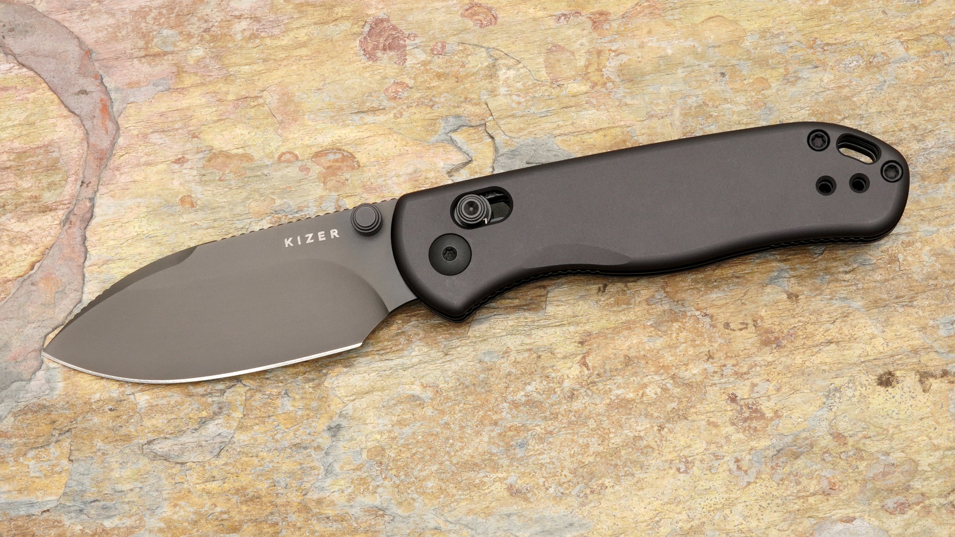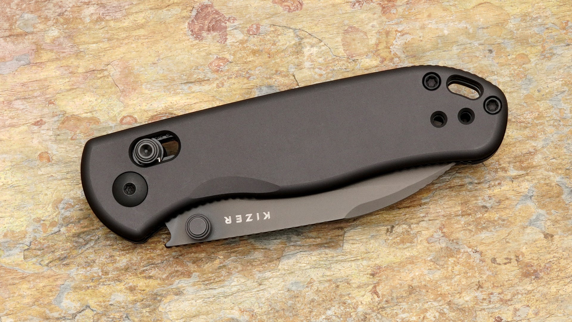 Kizer Drop Bear 2 Crossbar Lock, Black Blade and Black Aluminum Handle V3619.2KD2