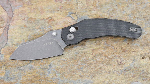 Kizer Mini Bulldog Clutch Lock Folder, Black Blade and Black Micarta Handle V3672SA2