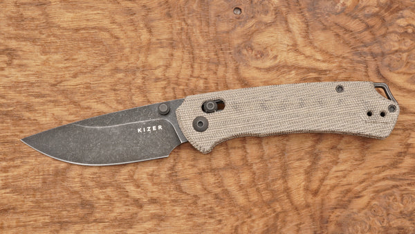 Kizer T1 CD Clutch Lock Folding Knife, Black Blade and Green Micarta Handle V3490.2CA1