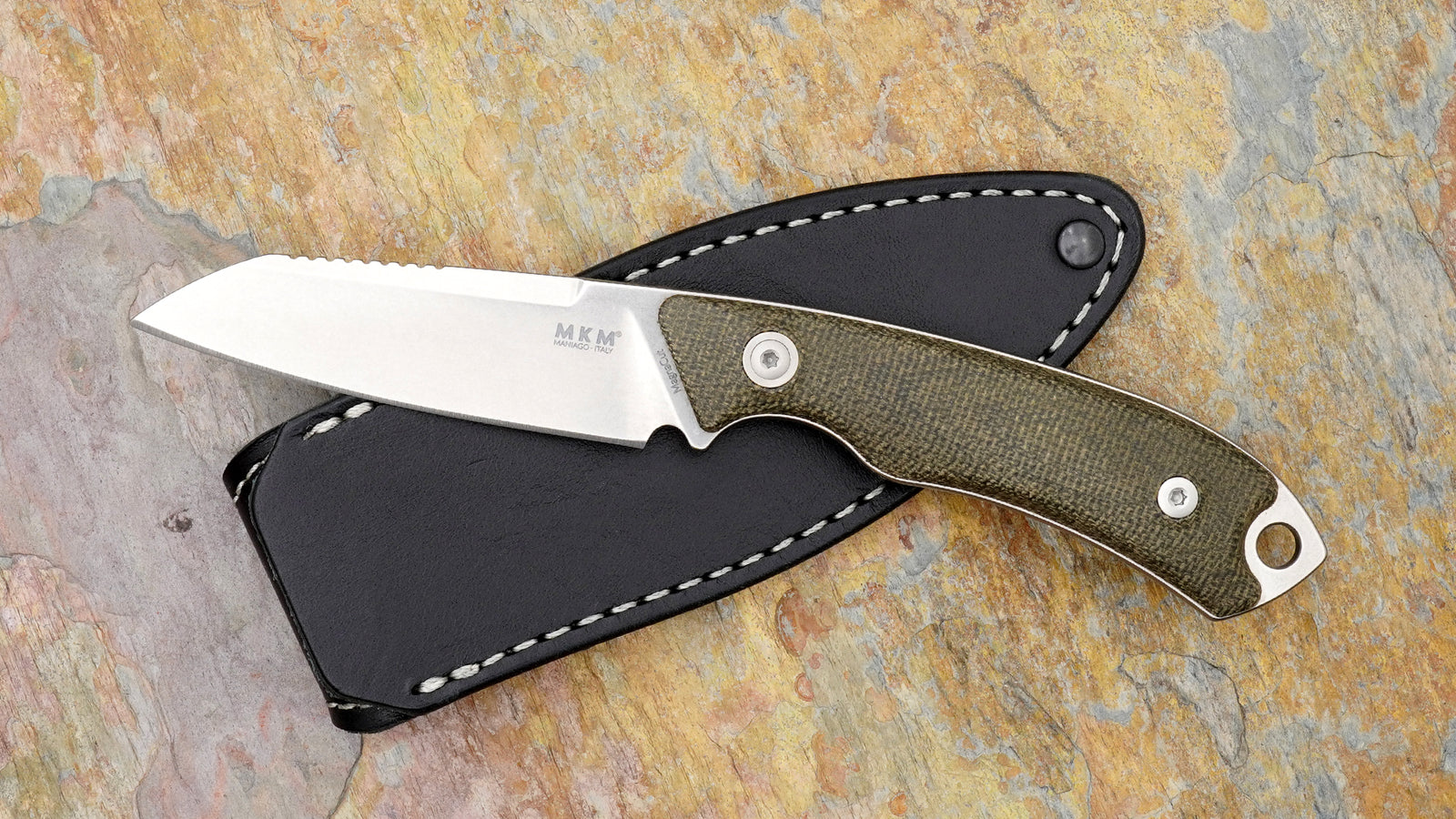 MKM Makro 1 Fixed Blade, Black Blade and Green Micarta Handle MA01-GCB
