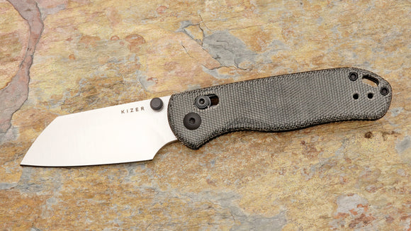 Kizer Drop Bear 2 Crossbar Lock, Sheepsfoot Blade and Black Micarta Handle V3619.2KS1