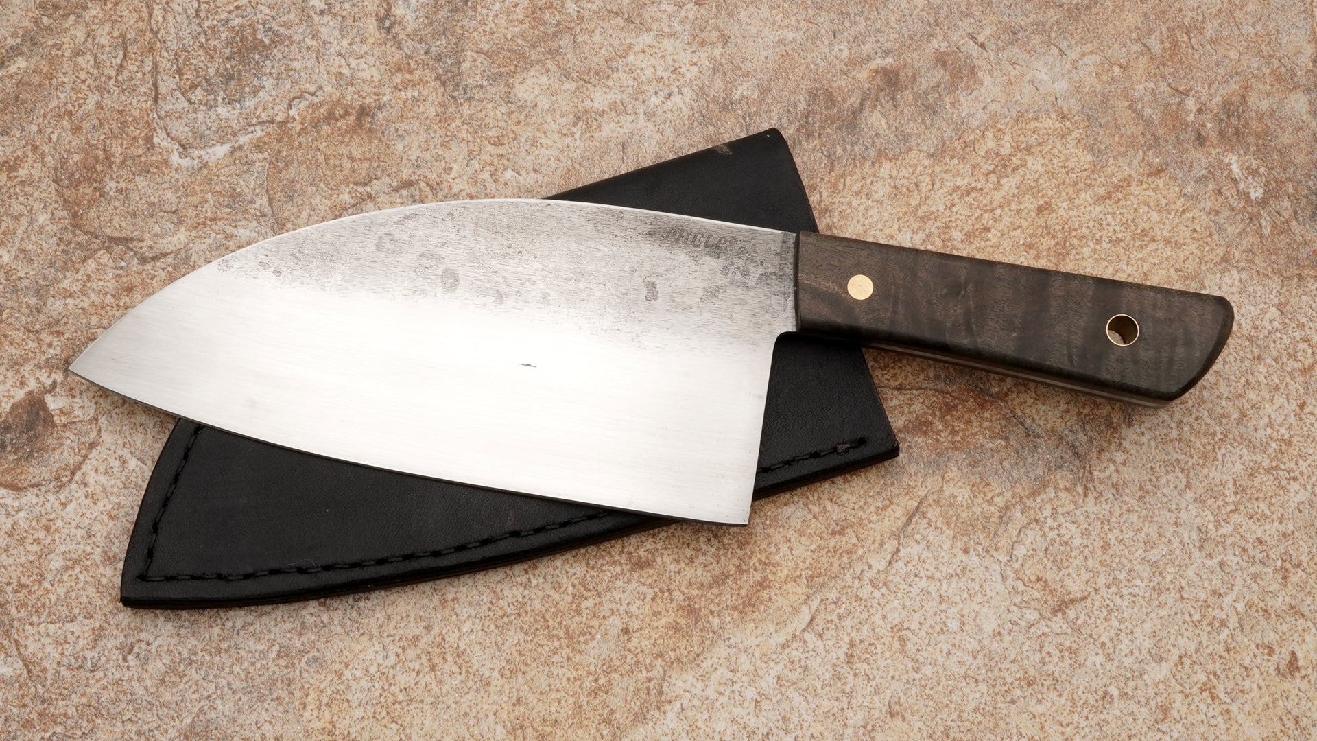 John Phelps Serbian Chef Knife, 1084 and Maple Handle