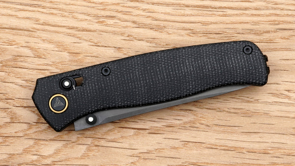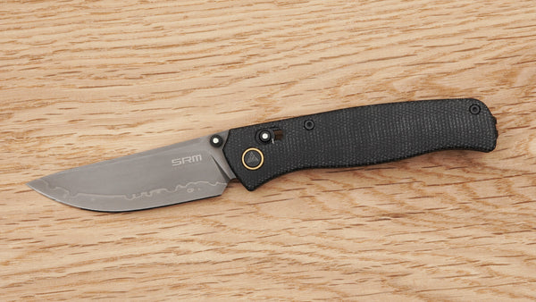SRM Medal Ambi Lock, Black 140Cr San-Mai Blade and Black Micarta Handle with GITD Thumbstud and Lock 255L-MB2