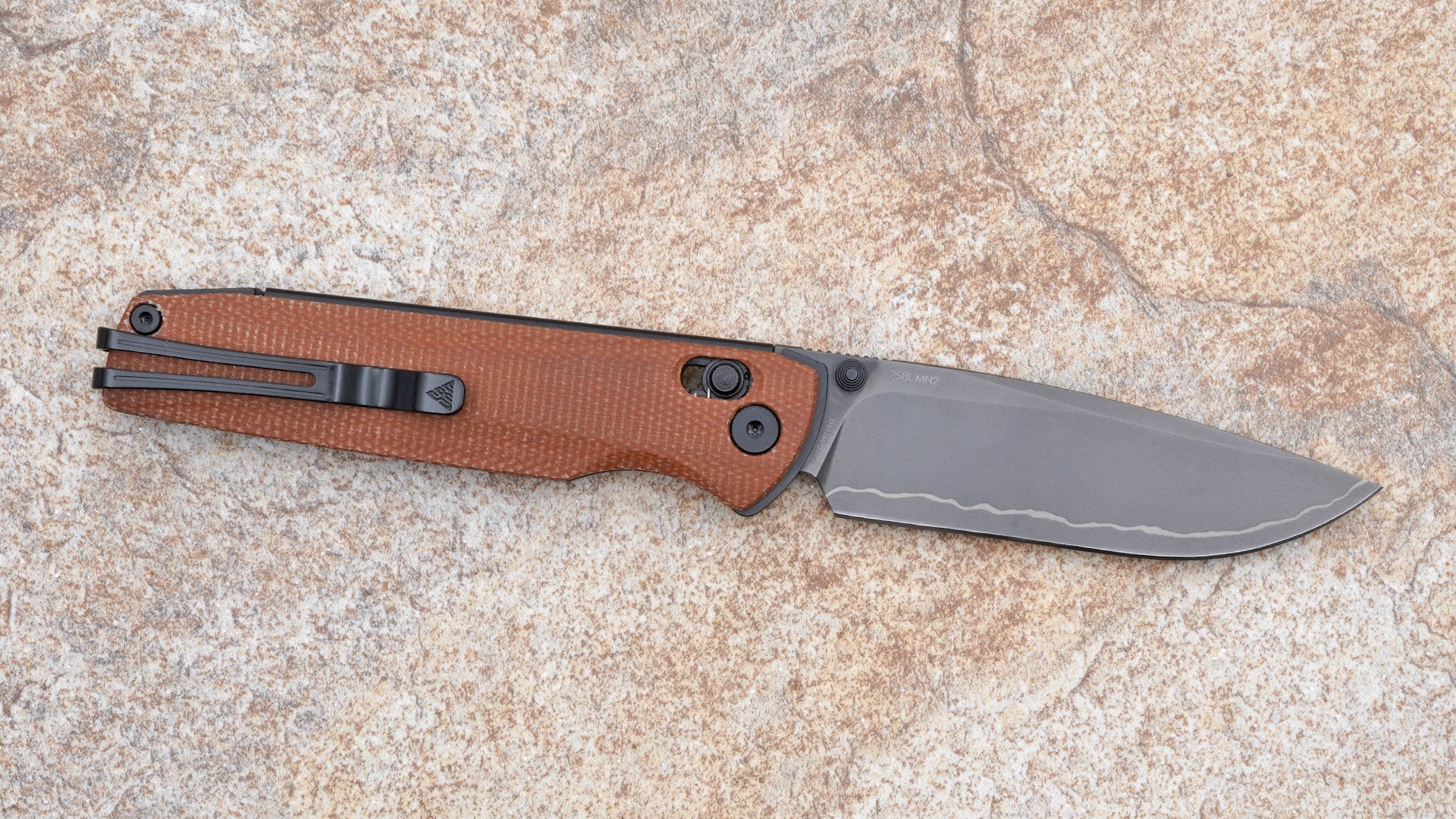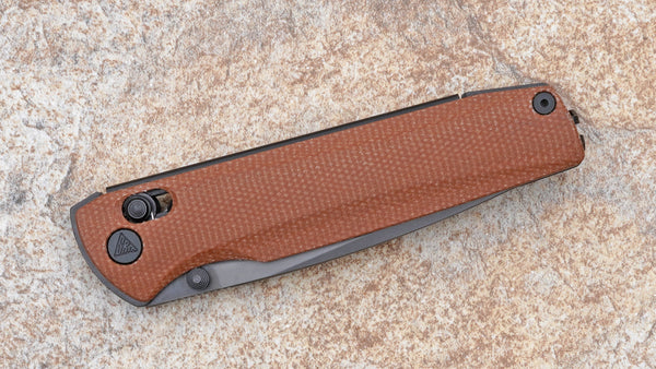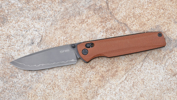 SRM Terrier Ambi Lock, Black 140Cr San-Mai Blade and Brown Micarta Handle 258L-MN2