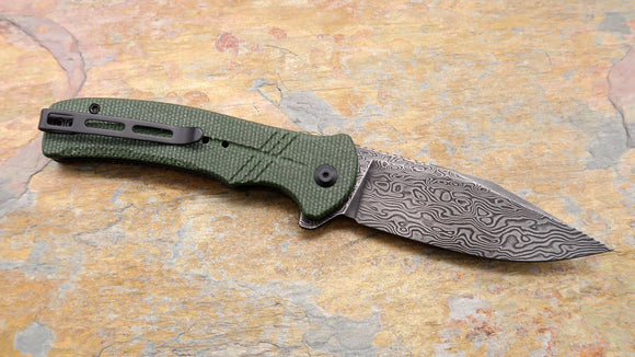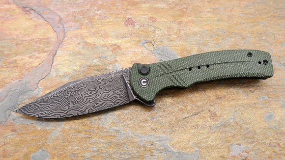 Civivi Damascus Cogent Button Lock Flipper, Green Micarta Handle Handle C20038D-DS1