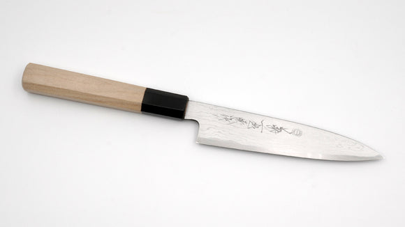 Gold Kokaji Blue #2 Damascus 6" Petty, Magnolia Wood Handle and Saya GKAD15P