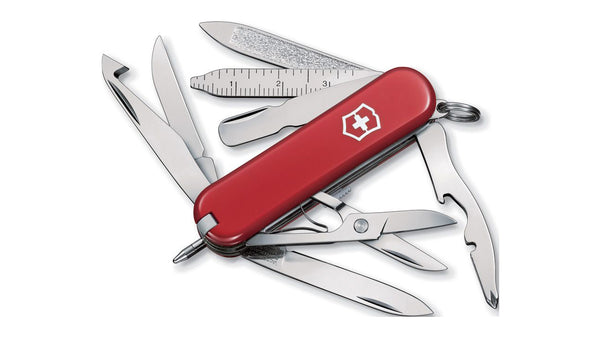 Tools: Knife Blade, Hook Blade, Straight Blade, Flat Head Screwdriver, Phillips Screwdriver, Scissors, Bottle Opener, Nail File, Ruler, Cuticle Pusher