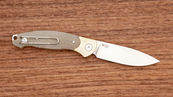 ACE Farley V2 Slipjoint, Brass Bolster and Green Micarta Handle