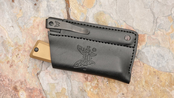 Includes leather pocket clip sheath and clip can be installed on the knife