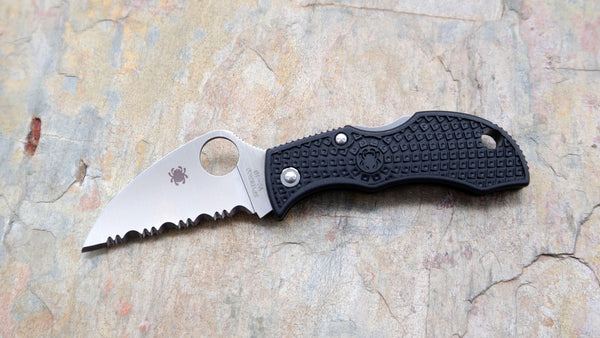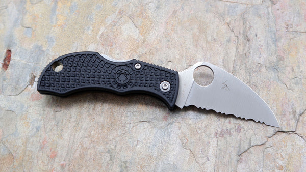 Manbug Wharncliffe, Serrated Blade Black FRN Handle MBKWS