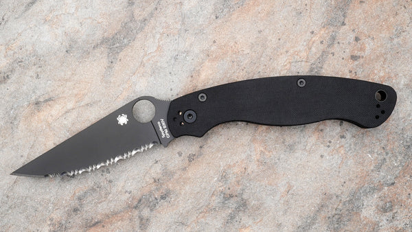 Military 2 Folder, Black Blade Black G-10 Handle Serrated Edge C36GSBK2