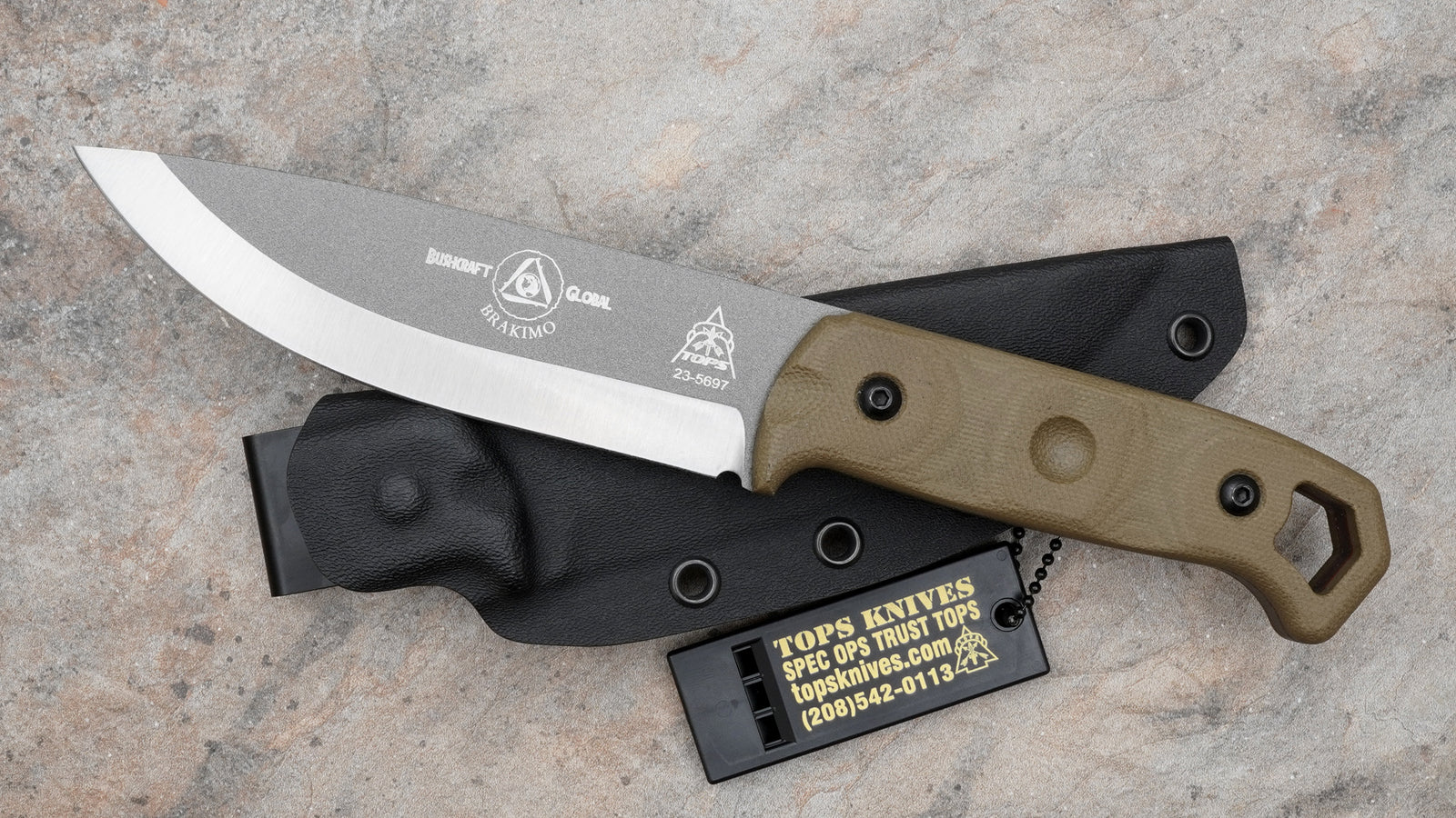 TOPS Brakimo Fixed Blade, Green Micarta Handle BRAK-02