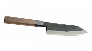 This knife is a solid worker in the kitchen that will handle just about anything you need, outside of going through bone. The iron lamination gives it a bit of weight, which a lot of people prefer, and the Blue #2 core steel holds an amazing edge. Since it is not stainless, a little bit of care is needed, but it's not hard at all to keep up on.