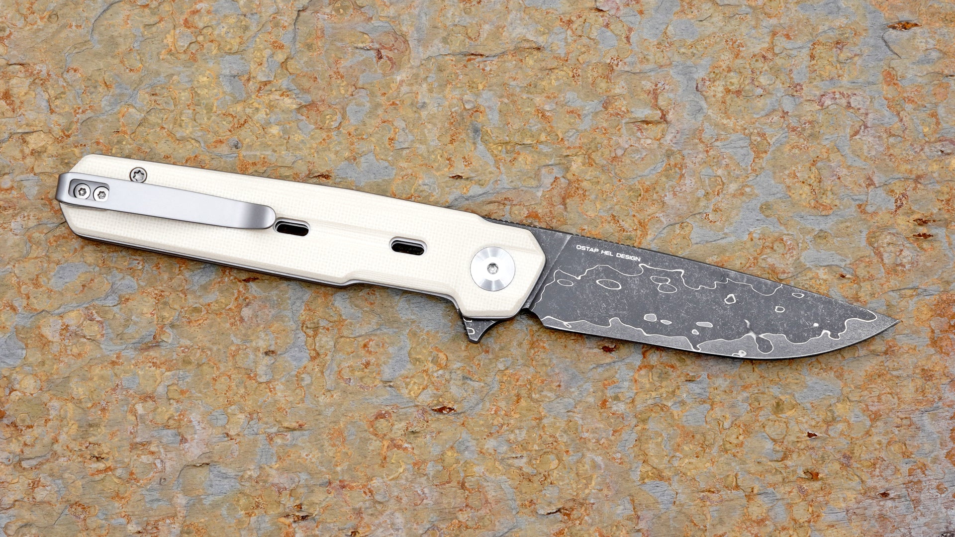 Civivi Damascus Navo Flipper, Ivory G-10 Handle C25015A-DS1