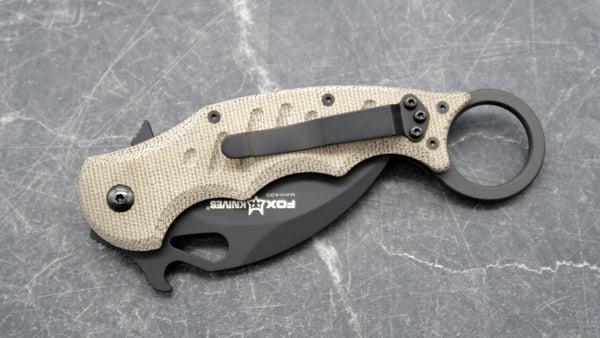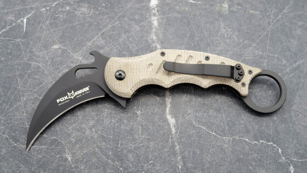 Fox Karambit, Black Blade and Green Micarta Handle 479MI
