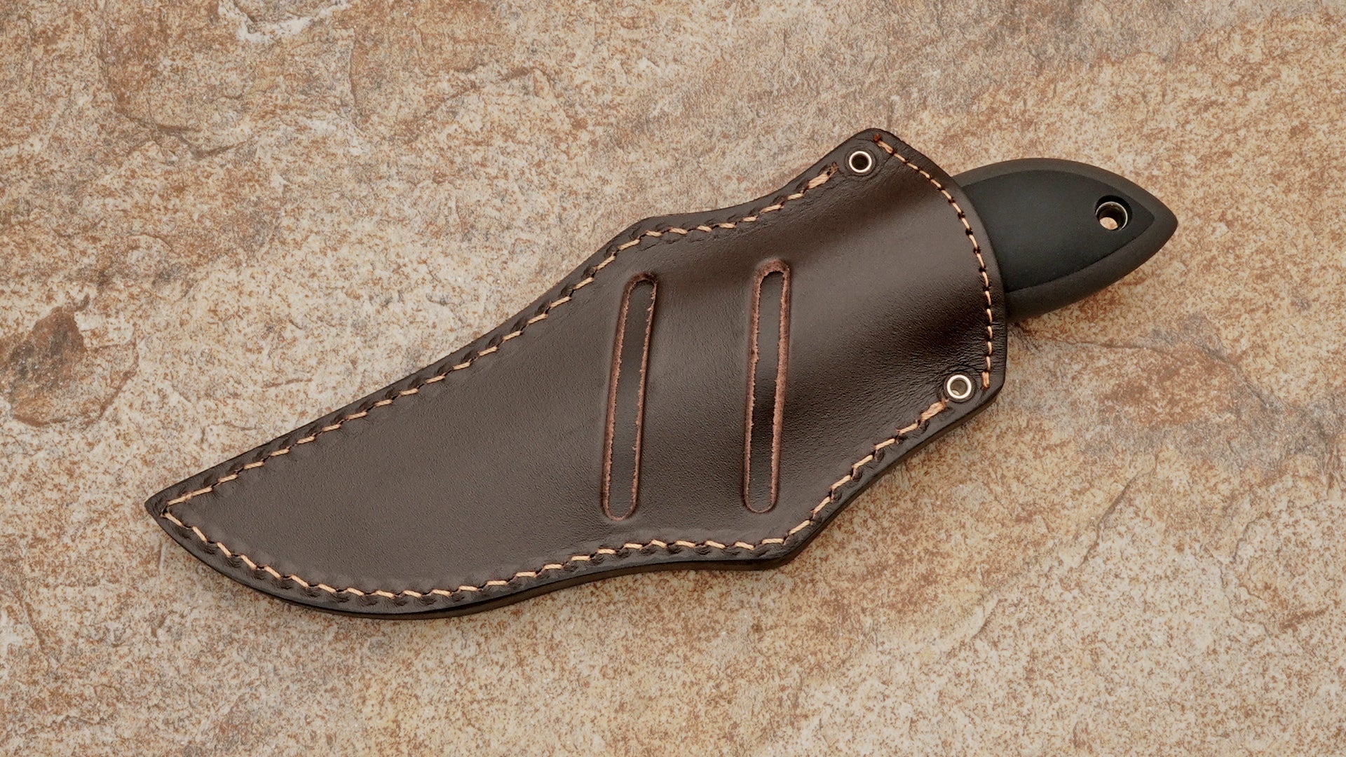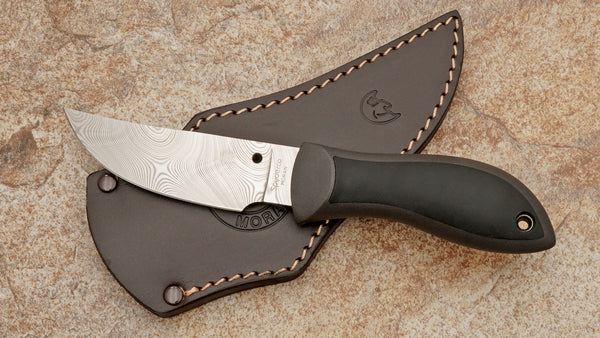 Sprint Moran Upswept Fixed Blade, Damasteel with Grey Handle and Leather Sheath FB01PGYD