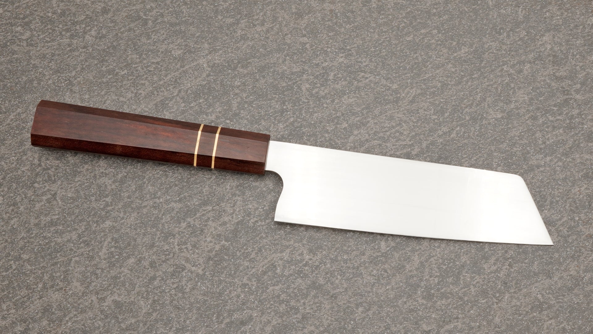 Tanuki Knife Co Hybrid Nakiri, SF100 with Bubinga Wood Handle